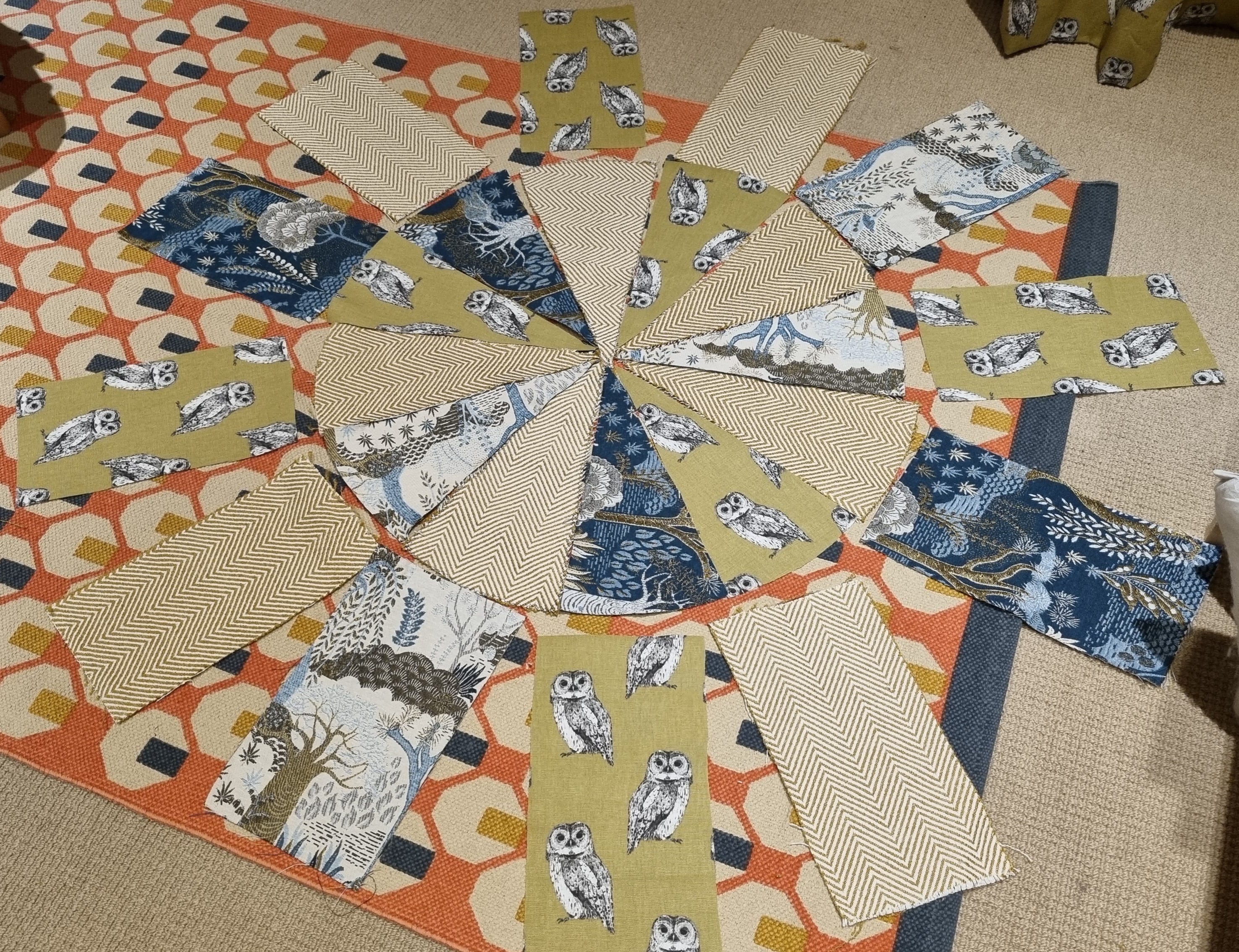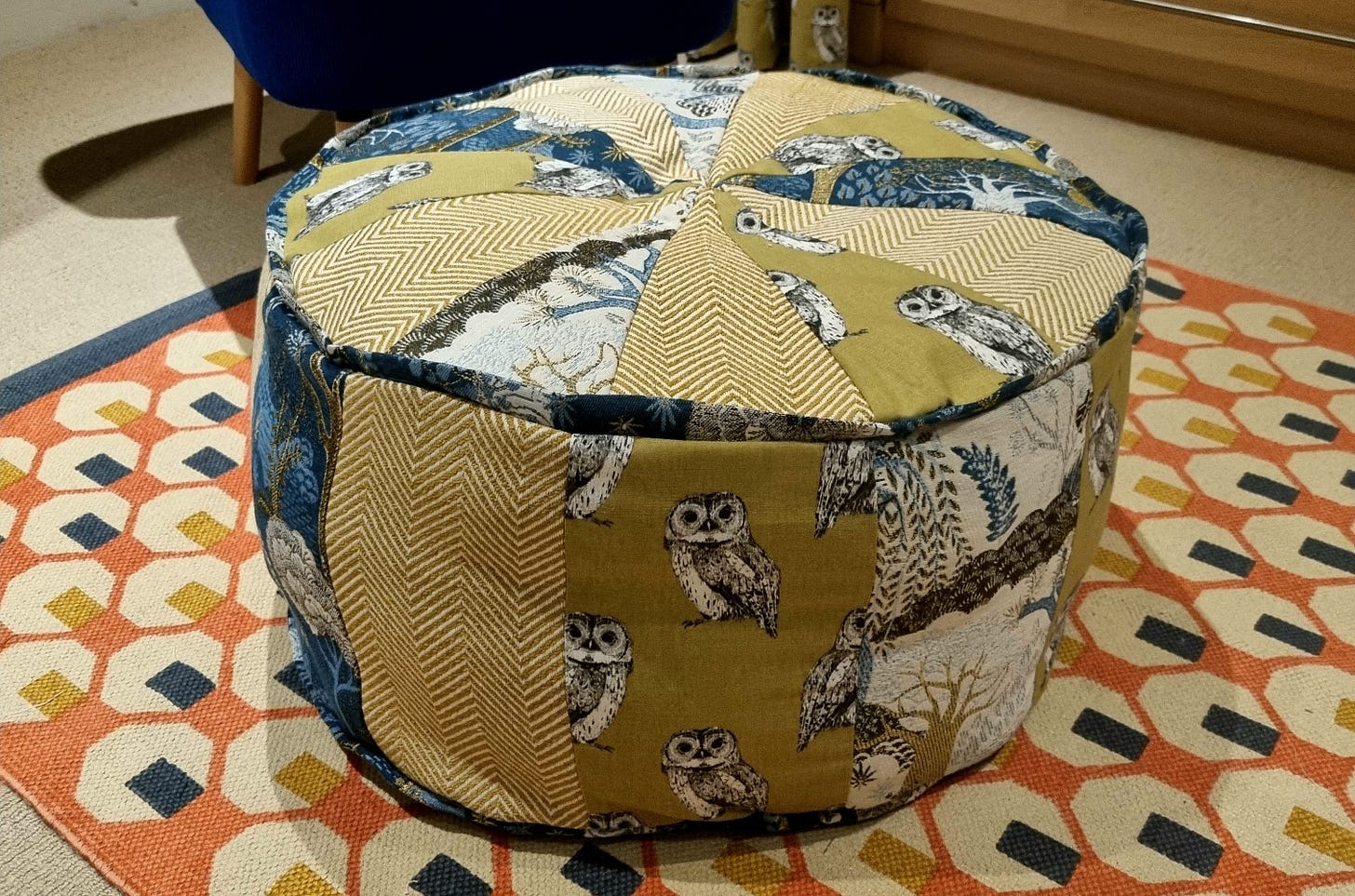 I’ve been making curtains (see previous posts) and have lots of scraps left over, so I found this great pattern to assemble into a pouf, which I’ve now added to my gorgeous office.
